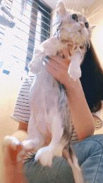 洗猫呢最重要的就是……把猫手动拧干
