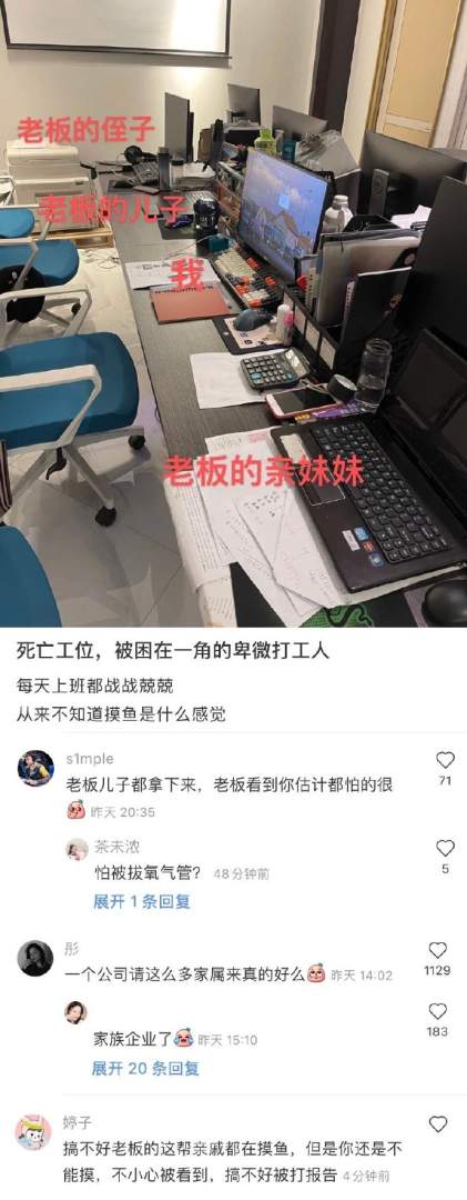 工位被老板的亲戚包围了。